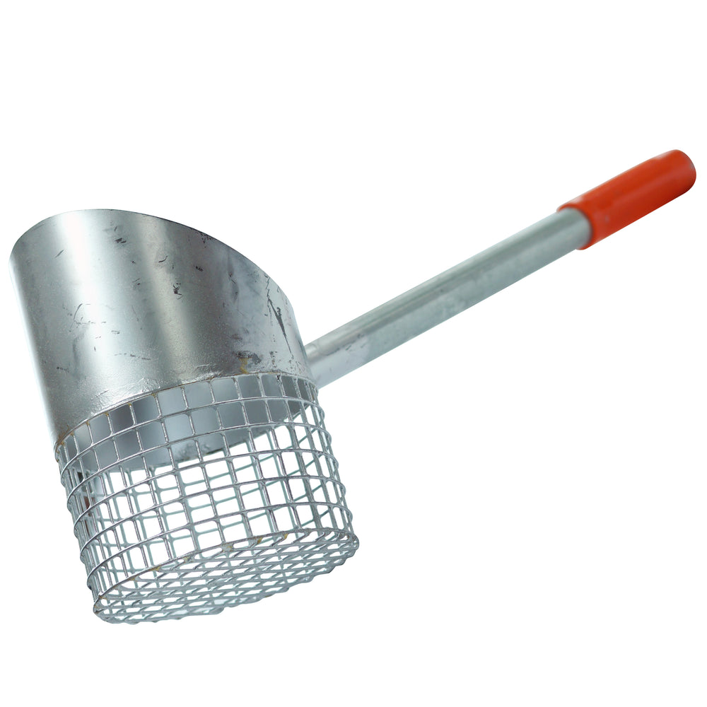 This 5” diameter sand scoop with a 14” handle is made of 16 gauge steel and strong ½” wire welded screen.