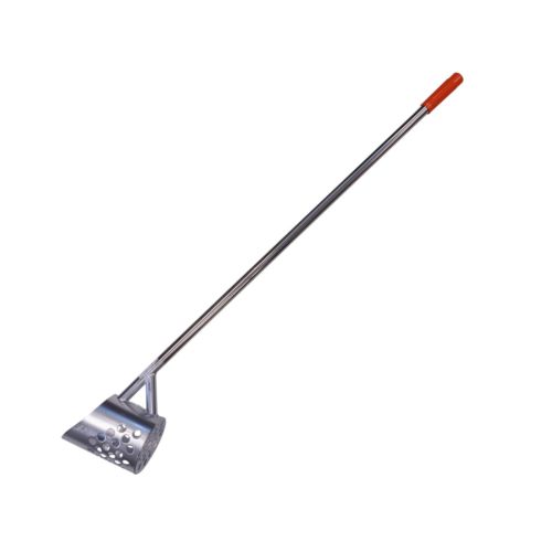 The 7/8" stainless steel handle is 40” long and has a rubber grip for comfort. The scoop bucket is 7" long by 5" in diameter.