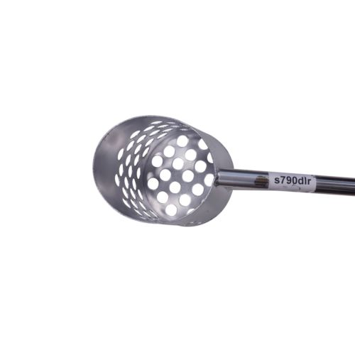 The scoop is made with 16 gauge non-magnetic stainless steel with 5/8" holes punched throughout the bucket.