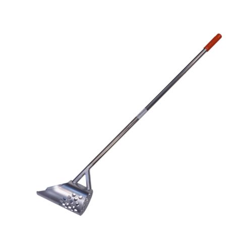 This scoop is made for shallow water hunting. Overall length of this scoop is about 47" long. This scoop weighs 4-1/2 pounds. 5/8" punched holes in the bucket of the scoop.