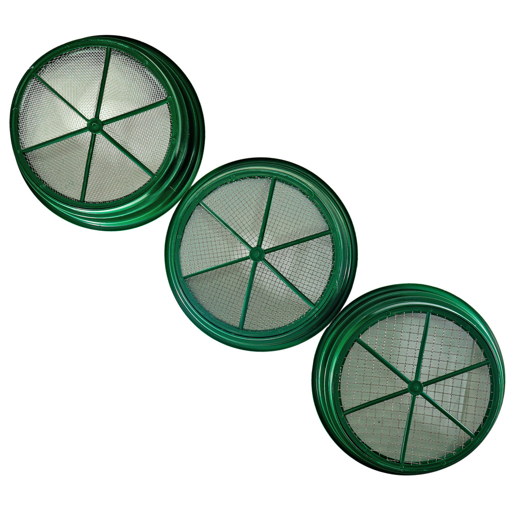 TerraX 3-Piece Green Plastic Gold Sifting Pan Classifier Set - 1/2", 1/4", 1/8" Mesh Sizes