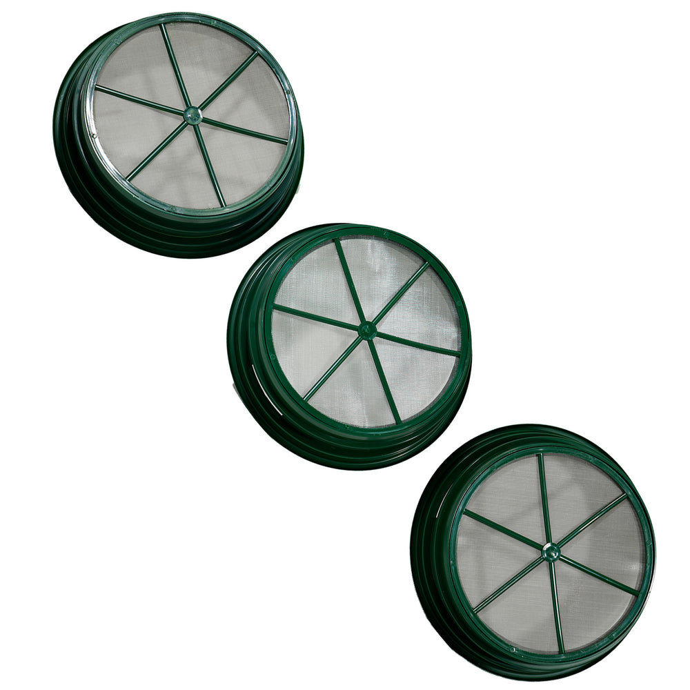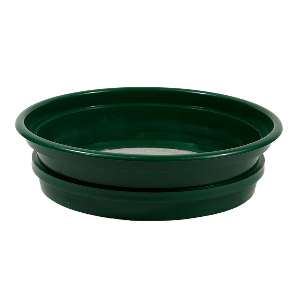 These mesh classifiers are expertly designed to securely fit on a standard 5-gallon bucket and can be used with a 14-inch gold pan. The classifiers have a stackable configuration and have a generous top diameter of 13-1/4" inches and a bottom diameter of 11 inches
