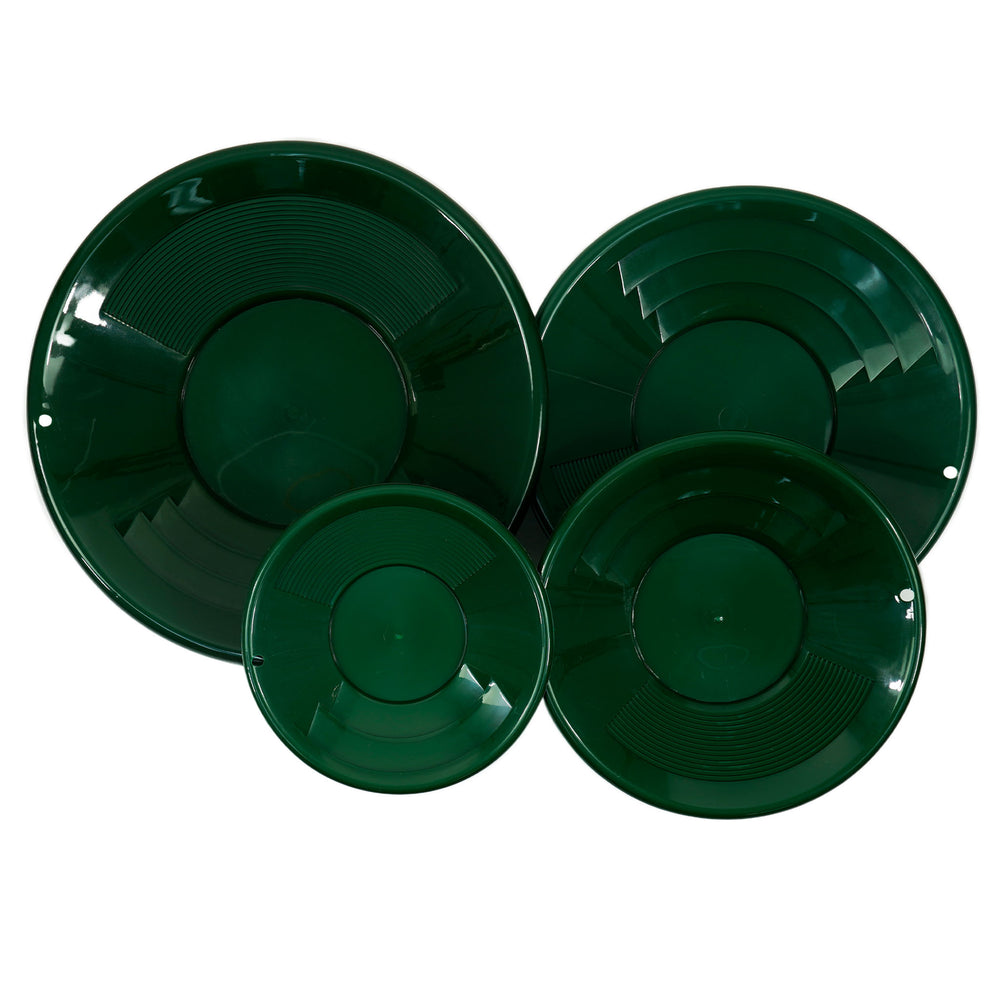 Sizes: This gold prospecting kit includes 8, 10, 12, and a 14 inches pan. Allowing you to choose the pan size that best suits your needs and preferences, depending on the scale of your gold prospecting activities.maneuver during prospecting but also guarantees its longevity, promising many seasons of reliable use.