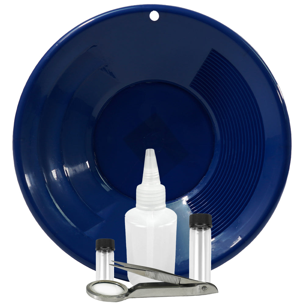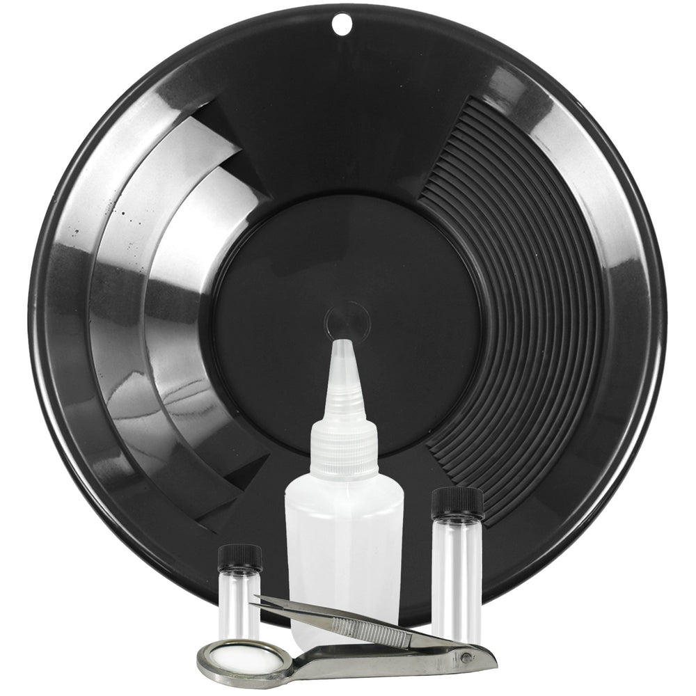 including 10" prospecting pan, two sizes of glass vials,