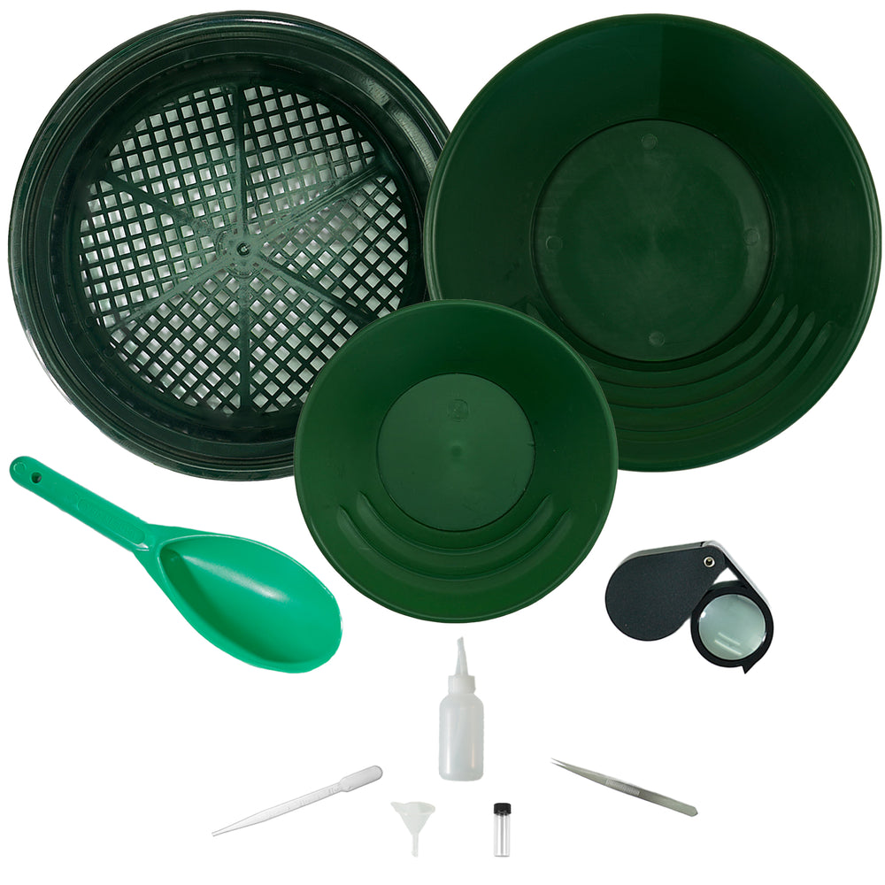 This all-in-one kit includes high-quality tools designed for beginners and seasoned prospectors alike. Each piece is crafted from durable plastic or metal materials to withstand rugged outdoor use, and the kit is proudly Made in the USA.