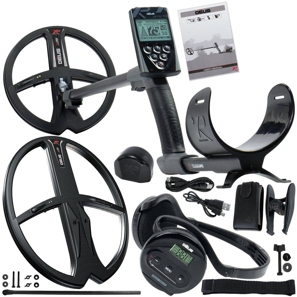 XP Deus Metal Detector Gold & Relic Hunt Package with 11″ x 13″ X35 Large Deep Seeking Waterproof Search Coil, 9″ X35 DD Waterproof Wireless Search Coil, Coil Cover, WS4 Wireless Backphone Headphones with removable electronic control, Headphone Storage Case, Wireless Remote Control Display Screen, Hip mount case for Remote Control, and a 5 Year Parts and Labor Warranty.